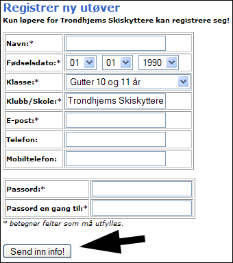 Disse er: navn, fødselsdato, klasse, klubb/skole, epost