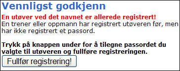 Trykk på "Fullfør registrering!" for å tilegne det passordet