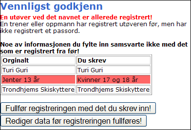 du skrev inn til utøveren. Da er utøveren ferdig registrert. |